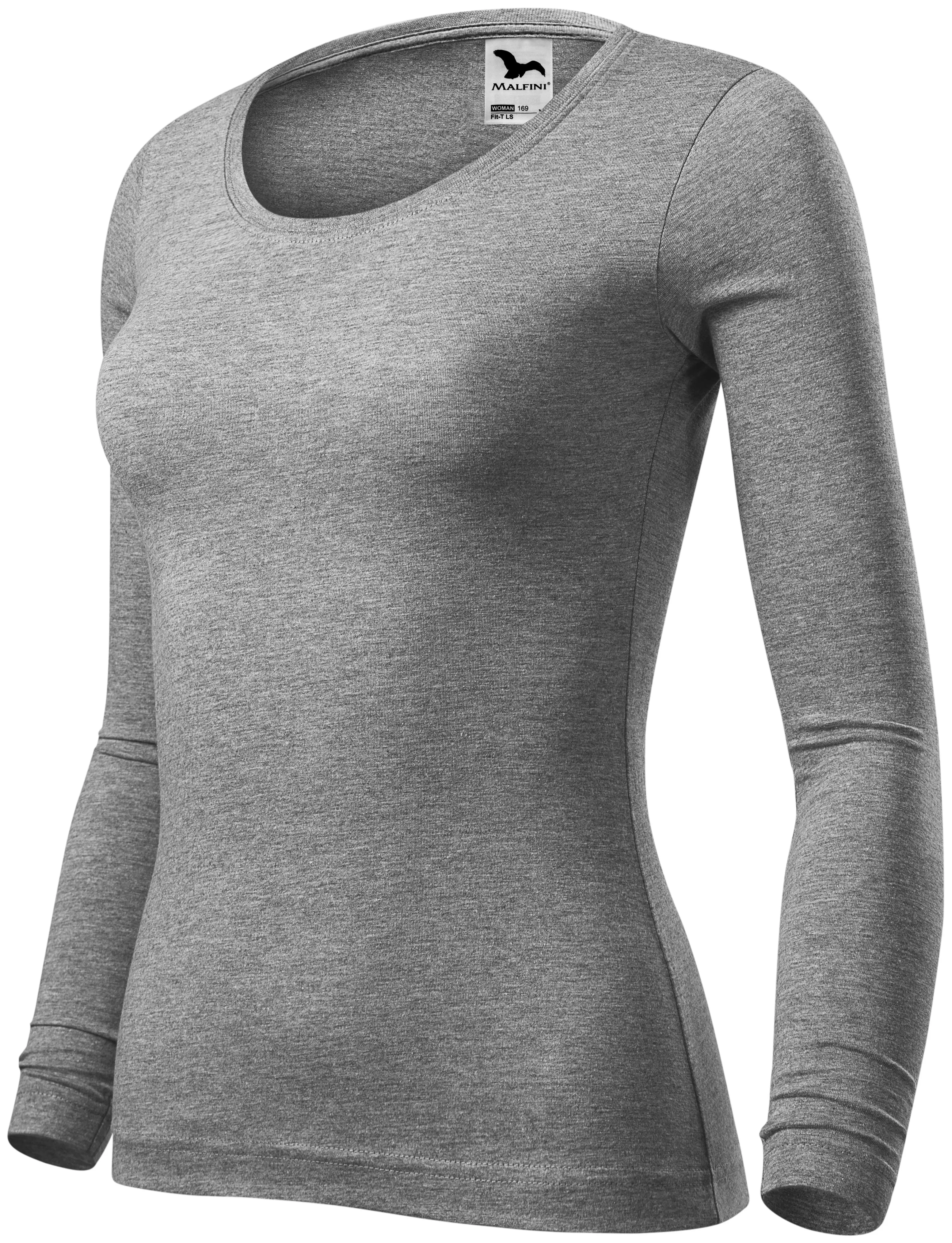 Дамска тениска с дълъг ръкав, тъмно сив мрамор, XS