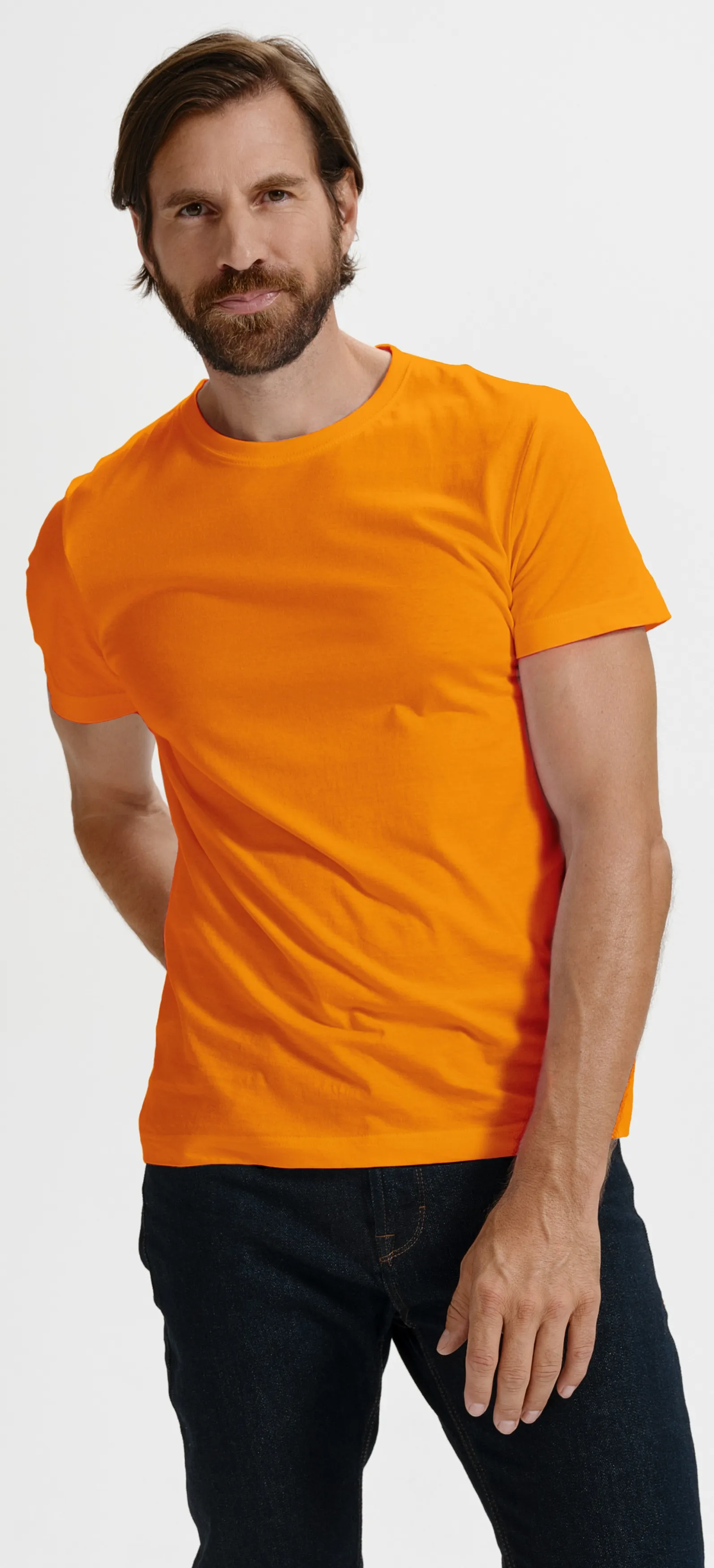 Мъжката изчистена тениска се предлага в широка гама от размери - от XS до 5XL (в избрани цветове). Използваме европейски размери.