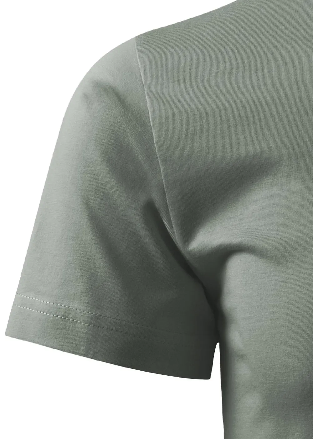 Мъжката семпла тениска е с тубулна кройка. Това означава, че основната част на тениската е изработена от едно парче във формата на цилиндър. Следователно тази тениска няма странични шевове.