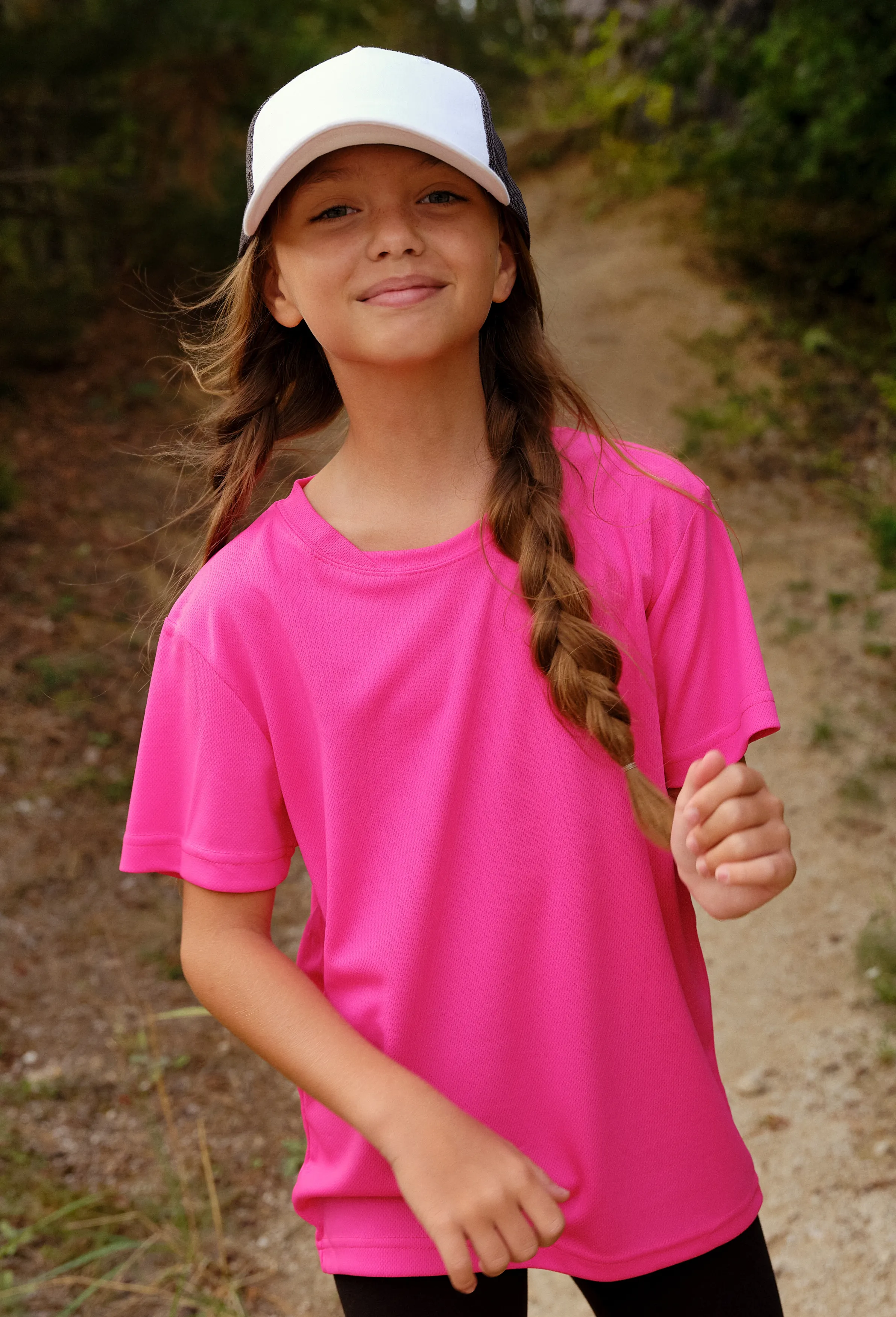 Спортна тениска за деца, неоново розово, 134 см / 8 години