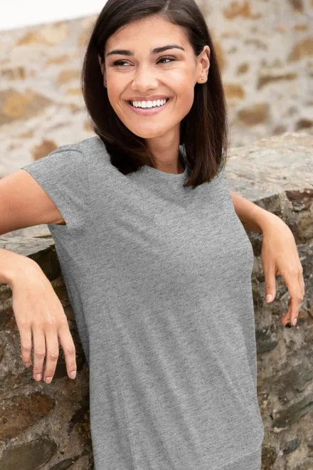 Изработени от качествен, приятен материал, те предлагат комфорт, дишане и дълъг живот. Сива цвят изглежда дискретно, елегантно и подчертава естествения стил без нужда от ярки аксесоари. Тези тениски са страхотен избор за жените, които държат на простотата и качеството.