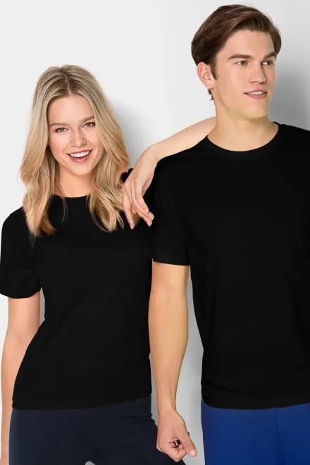 Едноцветните черни тениски с къс ръкав без щампа са сред онези вечни класически модели, които не бива да липсват в нито един гардероб. Техният универсален дизайн позволява лесно съчетаване с всякакви дрехи – подхождат както на дънки и сако, така и на спортни панталони.